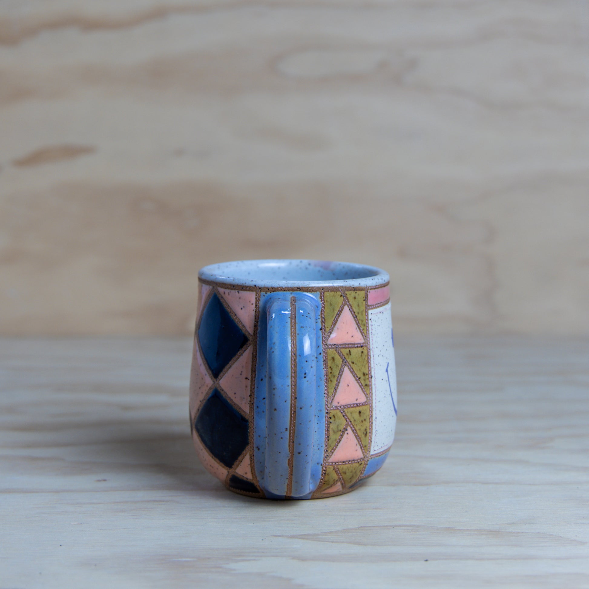 Wheel thrown ceramic mug. Each piece is individually made and decorated by me therefore the piece you receive may not be exact per the photo but will be very similar.