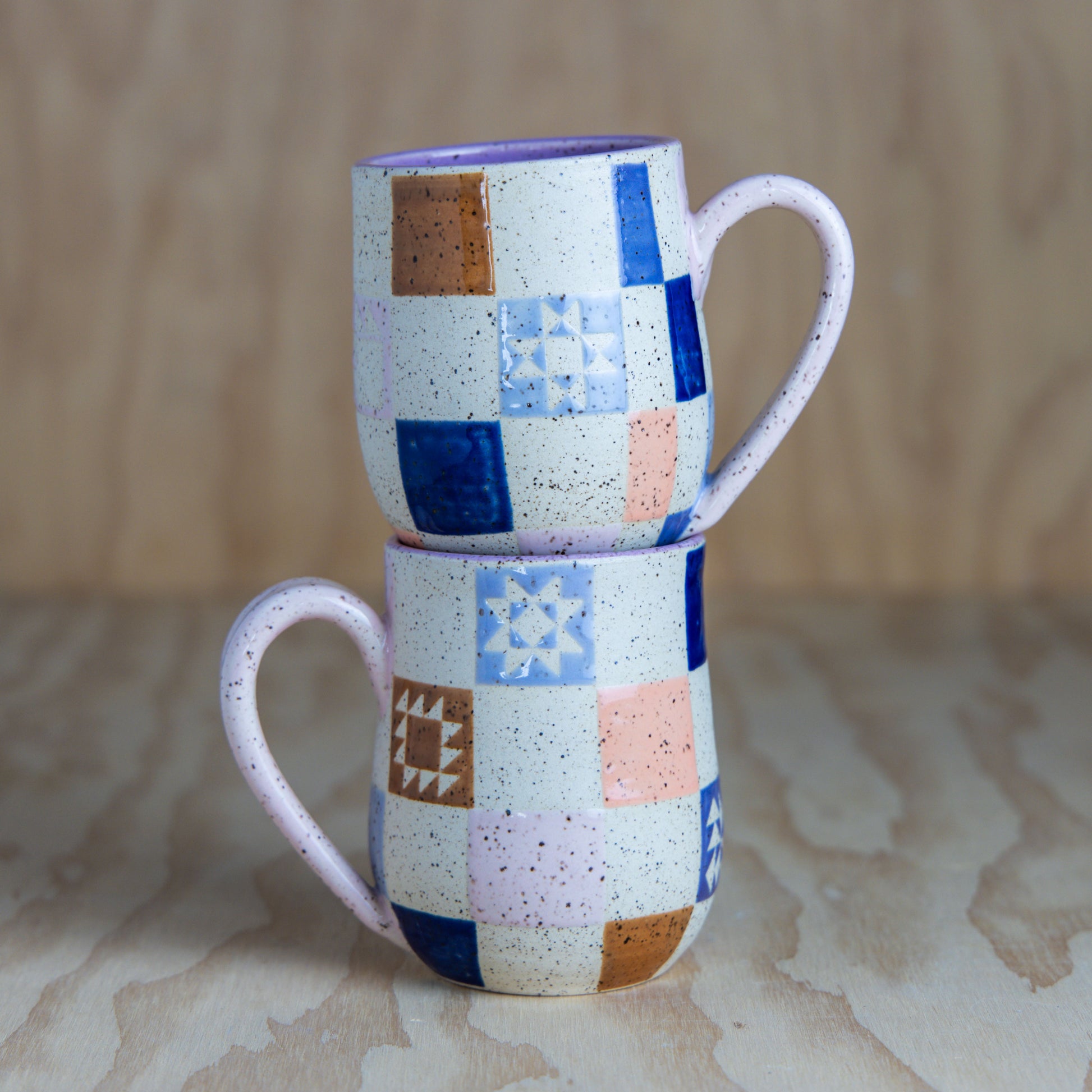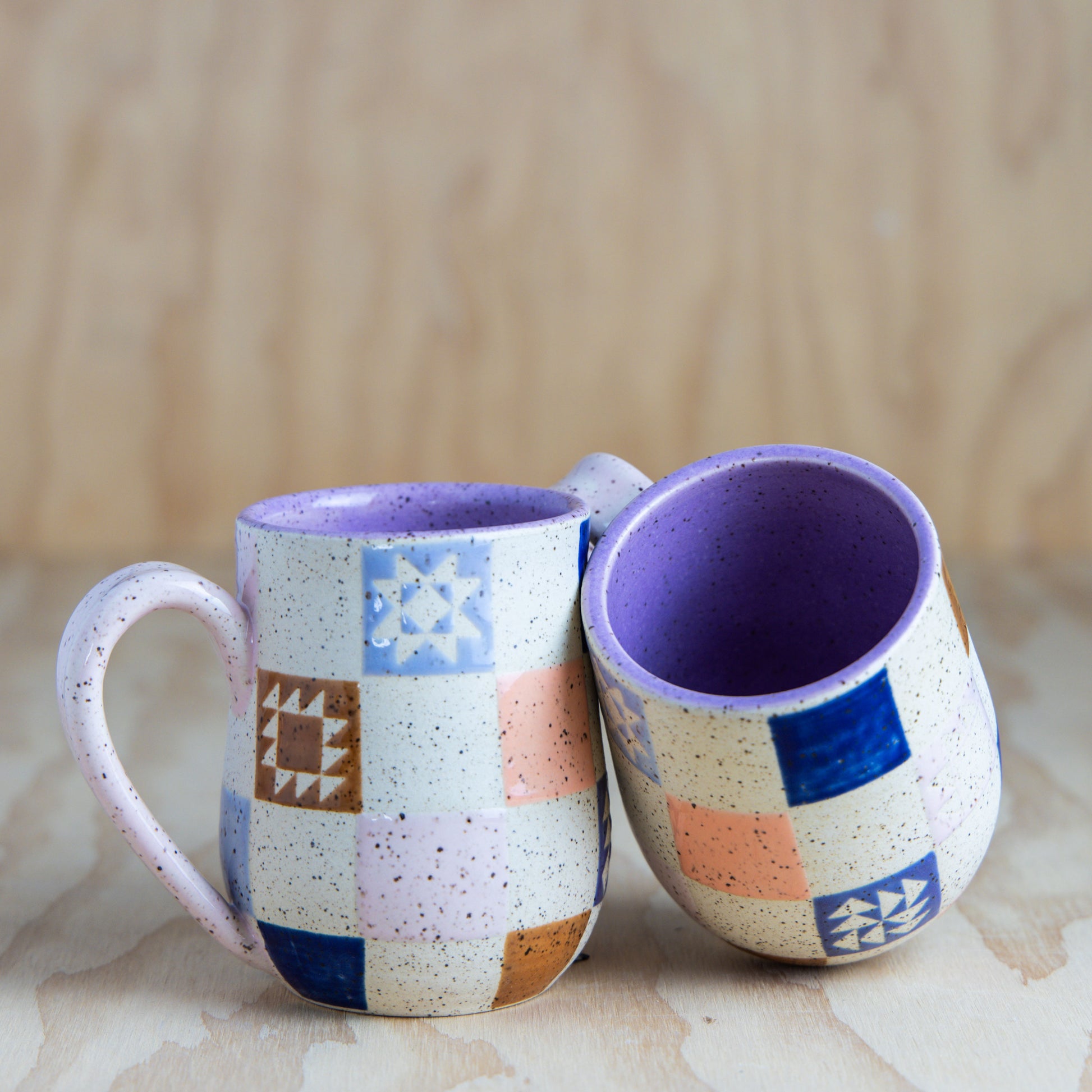Checkered Patchwork Mug-Purple