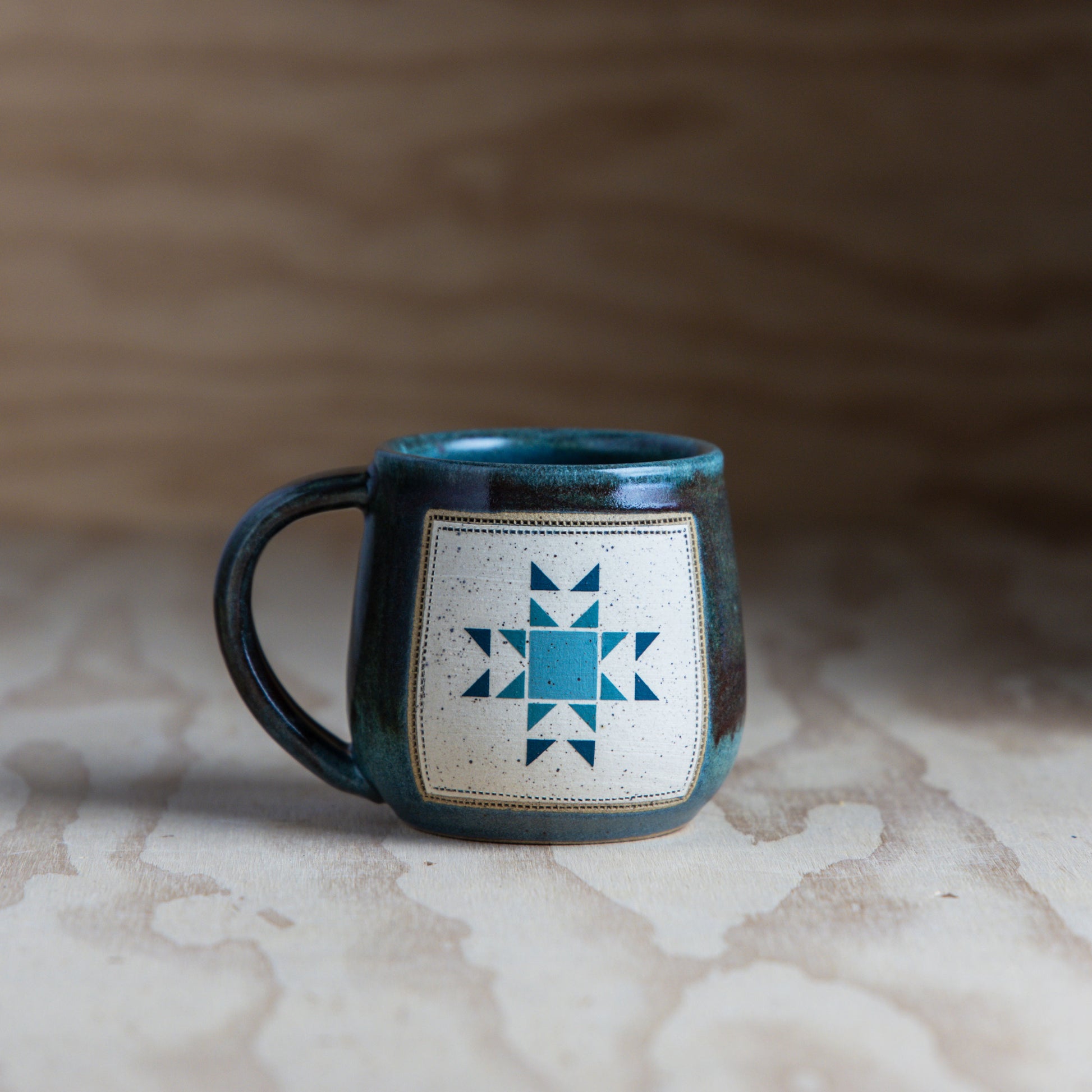 Wheel thrown ceramic mug. Each piece is individually made and decorated by me therefore the piece you receive may not be exact per the photo but will be very similar.